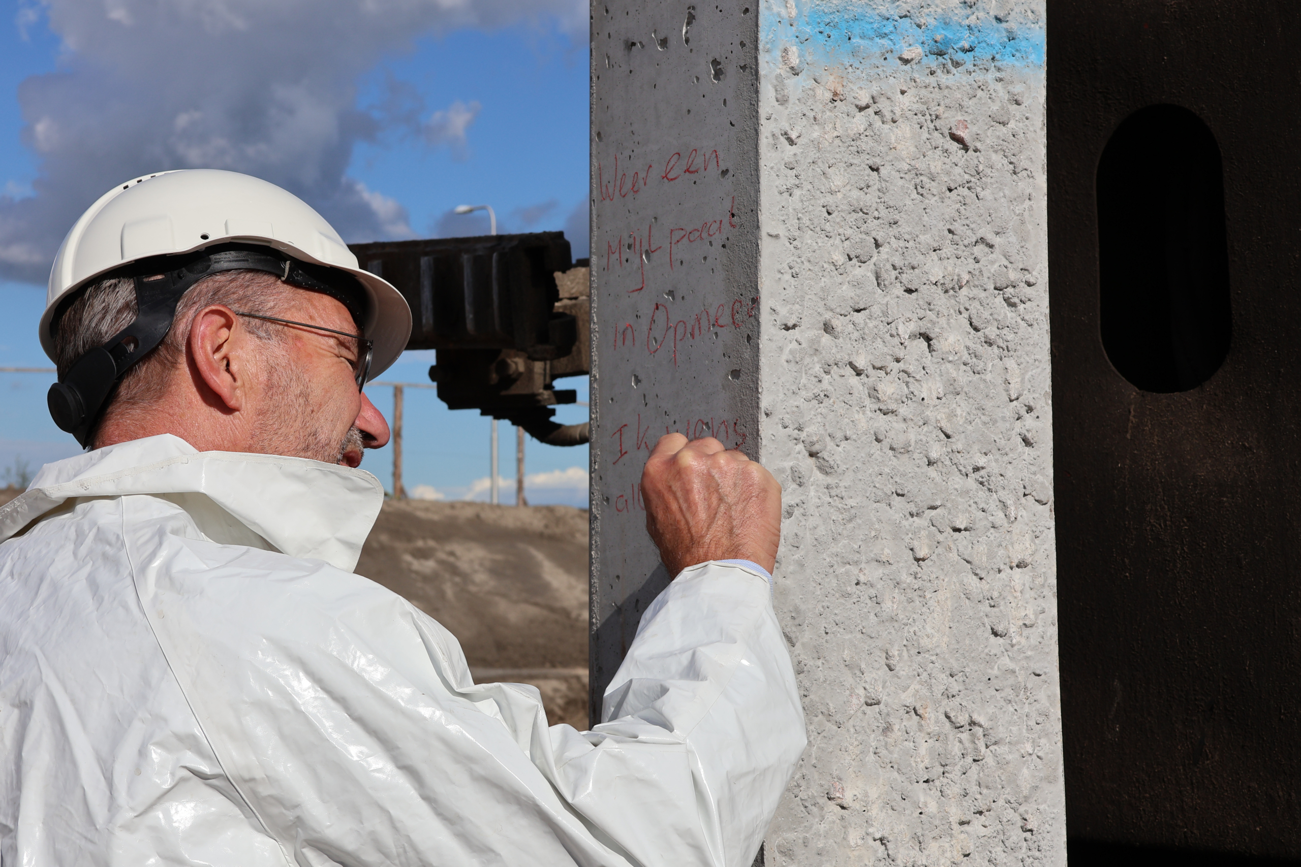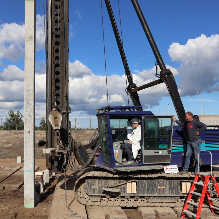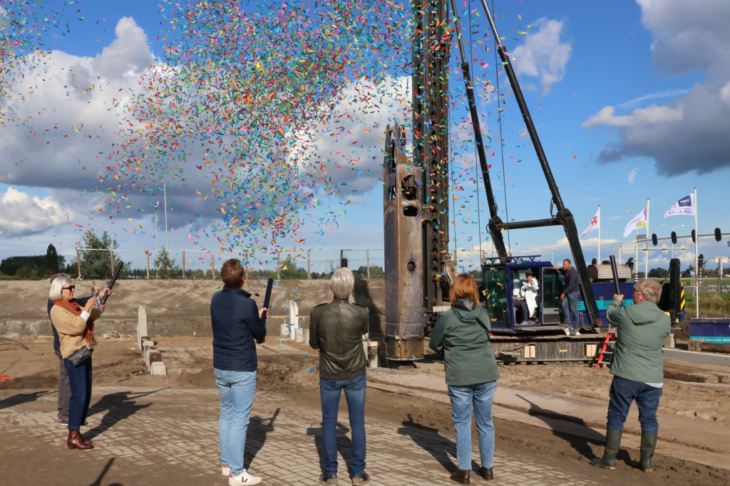 Tevens werd de feestelijke paal geslagen voor het appartementengebouw van het gemeentelijke woningbedrijf, die gesitueerd is in het plangebied. De wethouder nam plaats in de heistelling om de feestelijke paal te slaan.