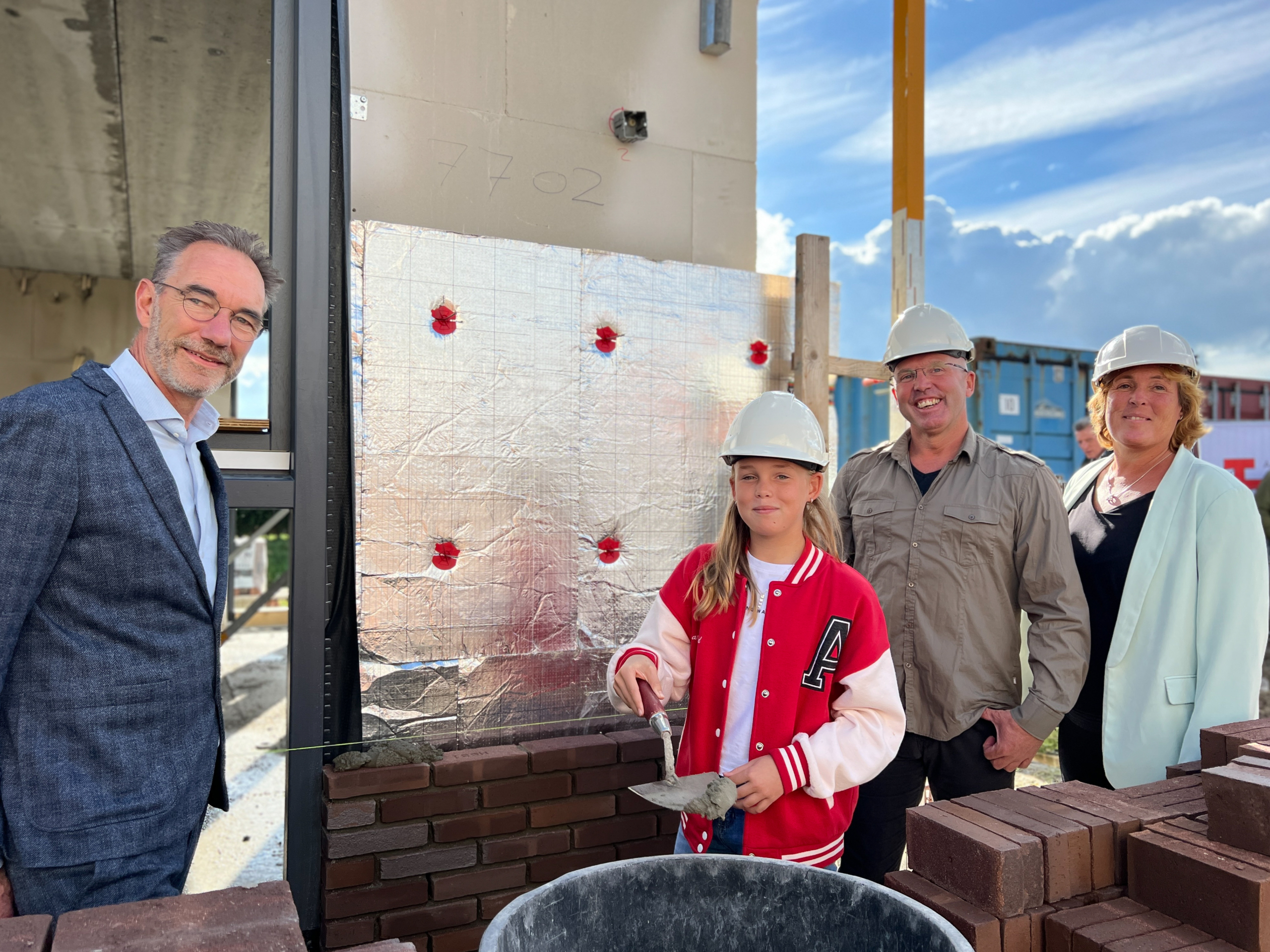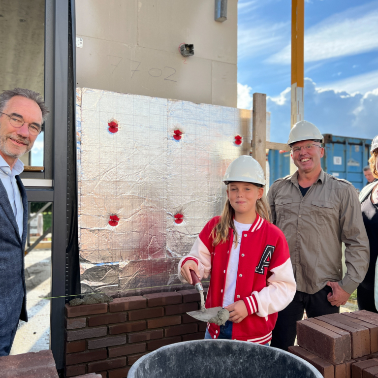 Op donderdag 29 september hebben de heer Herman ter Veen, wethouder van de gemeente Opmeer, en de toekomstige bewoners van bouwnummer 23, de heer Meijns, mevrouw Verkooijen en hun dochter Yenthe (11 jaar), de feestelijke steen van plan Heerenweide fase 3D-30 gemetseld. Zij stromen door vanuit de eerdere fase 1B-8 van plan Heerenweide, waar zij 7 jaar geleden een woning hebben gekocht.