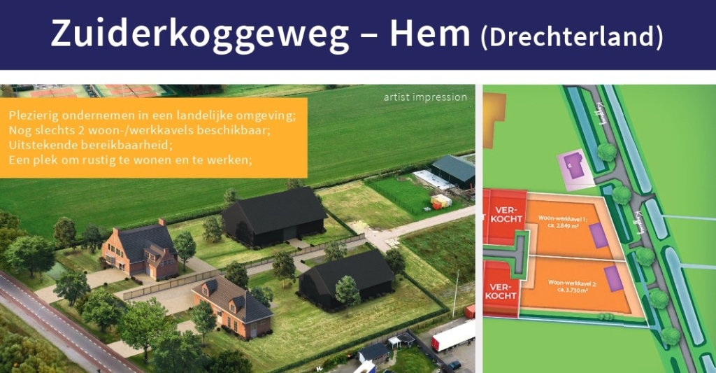 Laatste 2 woon-werkkavels in de verkoop bedrijventerrein Zuiderkogge te Hem