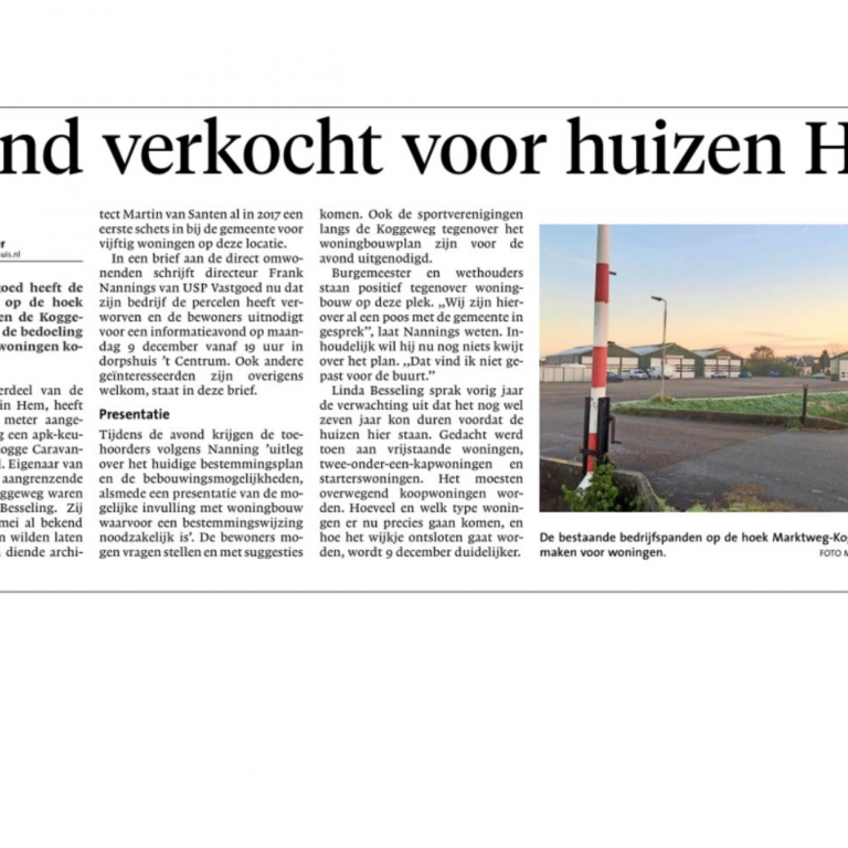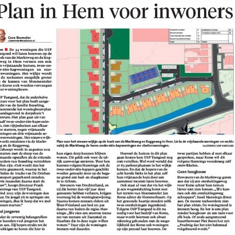 Bericht uit het Noordhollands dagblad d.d. 10 december 2019 Plan in Hem voor inwoners