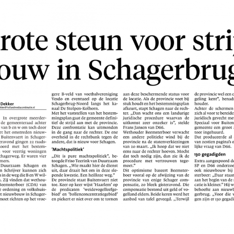 Bericht uit de Schager Courant d.d. 20 februari 2019