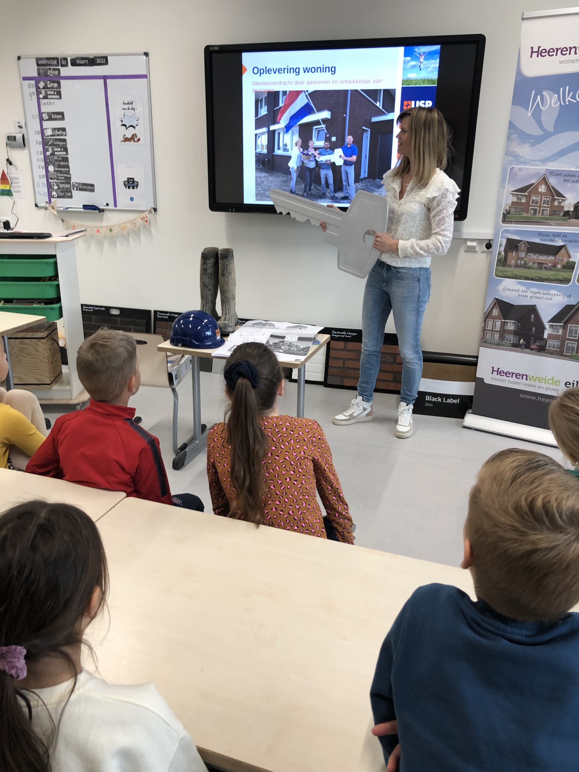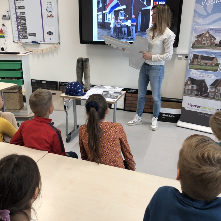 De meeste kinderen wisten al dat een architect woningen ontwerpt en een aannemer woningen bouwt. Valerie Boots heeft hen meer kunnen vertellen over de rol van de projectontwikkelaar, de adviseurs zoals de stedenbouwkundige en overige betrokkenen uit diverse fases van de projectontwikkeling zoals een marketingbureau en een makelaar. De betrokkenheid van de kinderen was groot en zij stelden veel vragen. Ook de meegebrachte materialen, zoals de bouwlaarzen met stalen neus, de grote sleutel die wordt gebruikt bij de oplevering van de woningen, de helm die je op doet als je de bouwplaats betreed en het diverse promotiemateriaal, werden aandachtig bekeken.