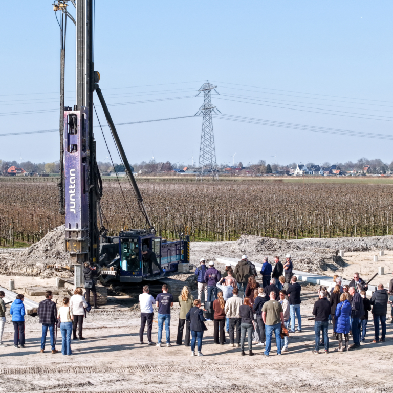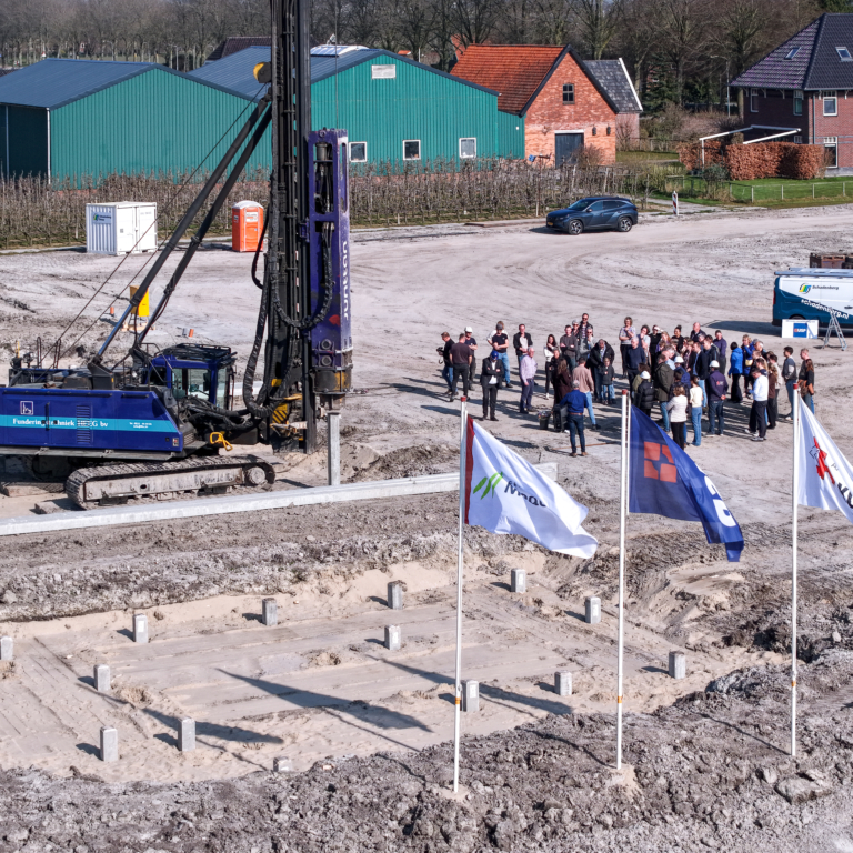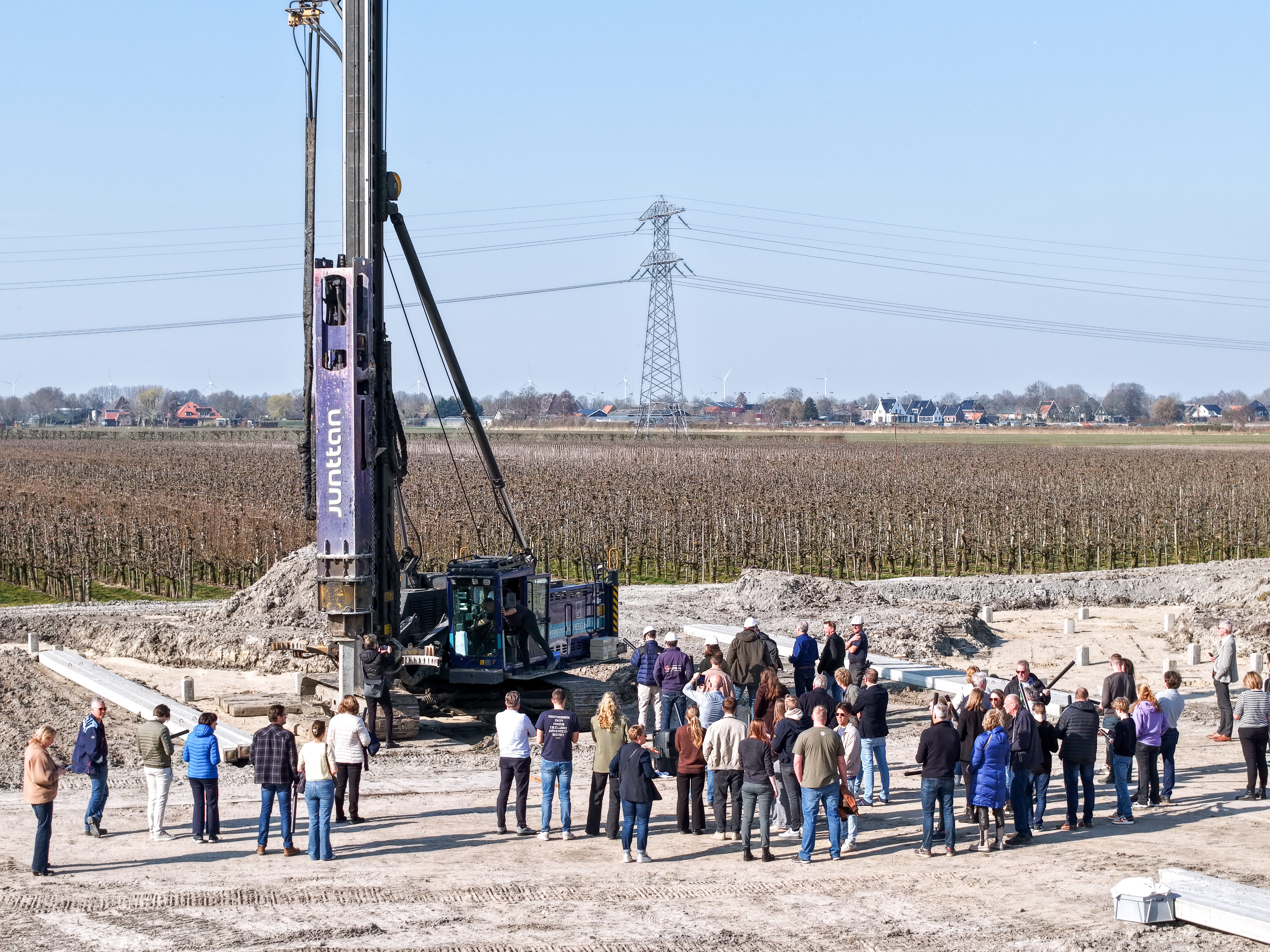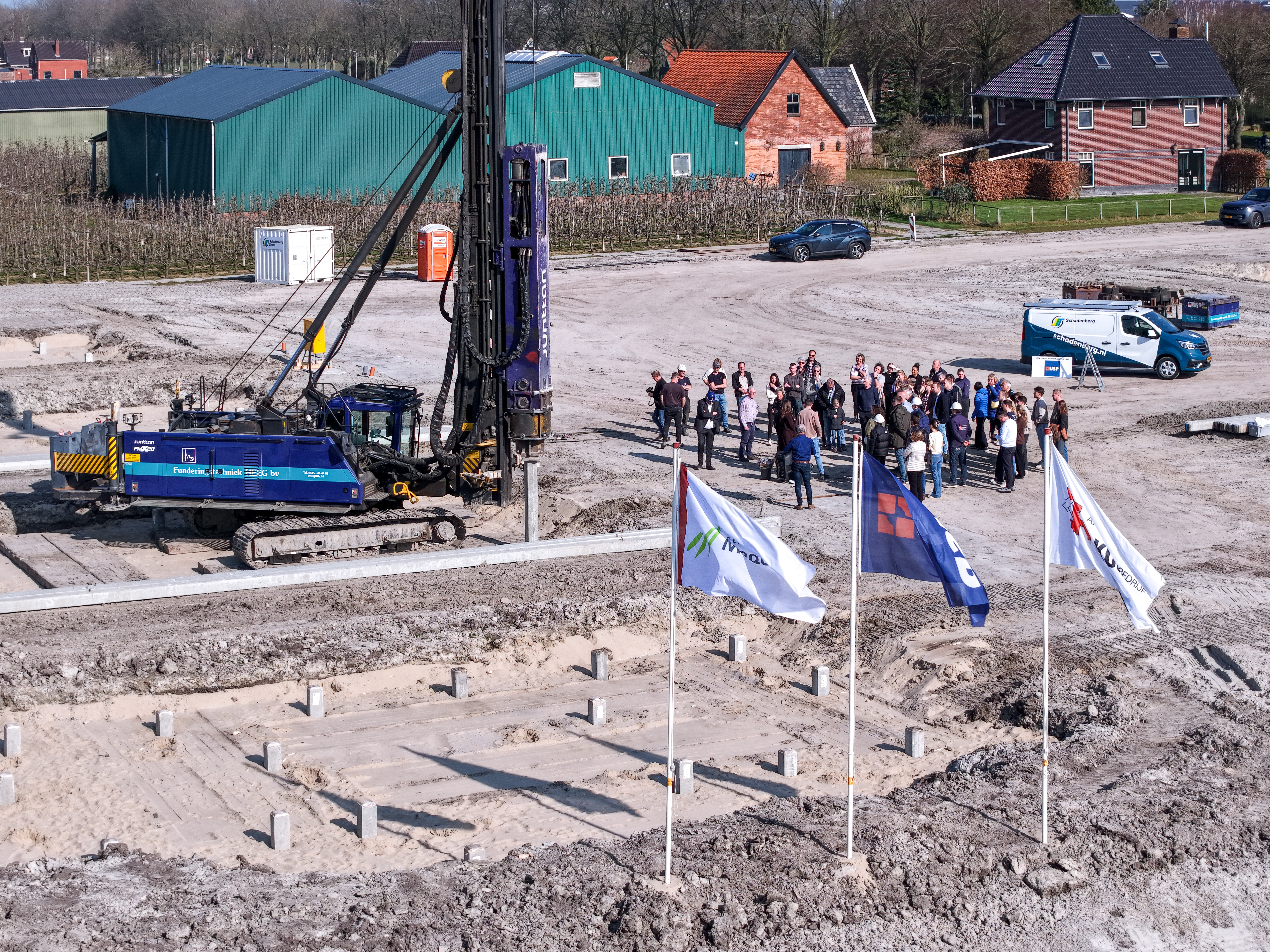Het slaan van de eerste paal van één van de woningen is een feestelijk startsein voor de bouw van het plan. Het is een heuglijk moment voor de toekomstige bewoners, die getuige zijn van de start van hun nieuwe woning.