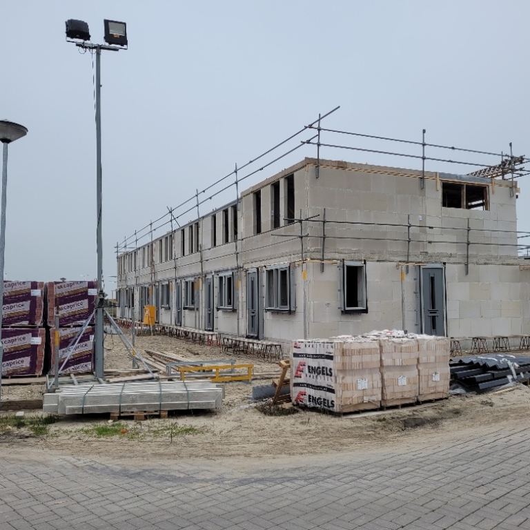 Nadat de bouw stil heeft gelegen vanwege de sneeuw en de vorst, zijn de werkzaamheden weer opgepakt. De meeste verdiepingsvloeren zijn gestort, er wordt volop gemetseld en de eerste woningen zijn gereed gemaakt voor het plaatsen van de kap. Als alles volgens planning verloopt, wordt er in het 4e kwartaal dit jaar gestart met opleveren van de woningen.