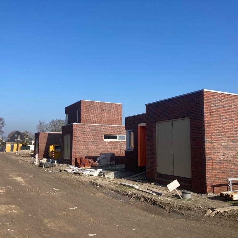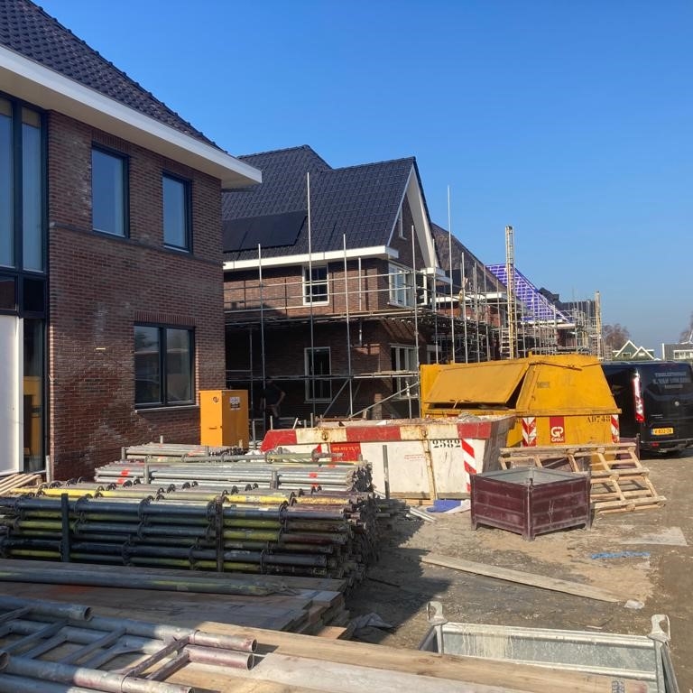De bouw van de 25 projectmatige en de 9 vrijstaande woningen in plan De Overhaal gaat voorspoedig. De projectmatige woningen zijn waterdicht en van dakpannen voorzien.